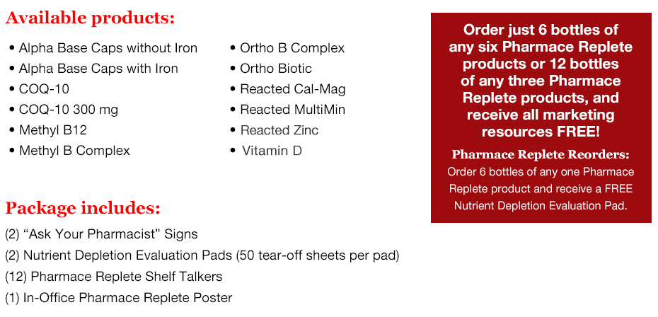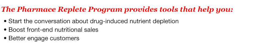 The Pharmace Replete Program is the solution to help pharmacists address drug-induced nutrition depletion.