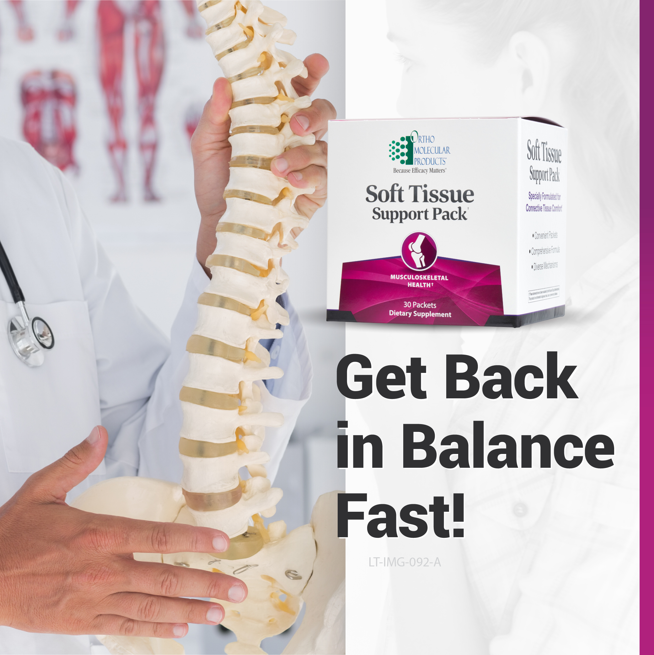Soft Tissue Support Pack aligns with your chiropractic plan! Inflammation is a natural part of the body’s immune response, a cascade triggered to protect the body and maintain normal tissue repair. Soft Tissue Support Pack provides a full spectrum of botanicals, enzymes and micronutrient factors to maintain normal inflammatory balance and address discomfort of ligaments and tendons from exercise. Soft Tissue Support Pack includes the following supplements: 2 Traumeric capsules, 3 Vascuzyme tablets, 2 GABAnol capsules and 1 C-Flav capsule for a pack of potent support. #chiropractor #softtissuesupportpack #orthomolecularproducts