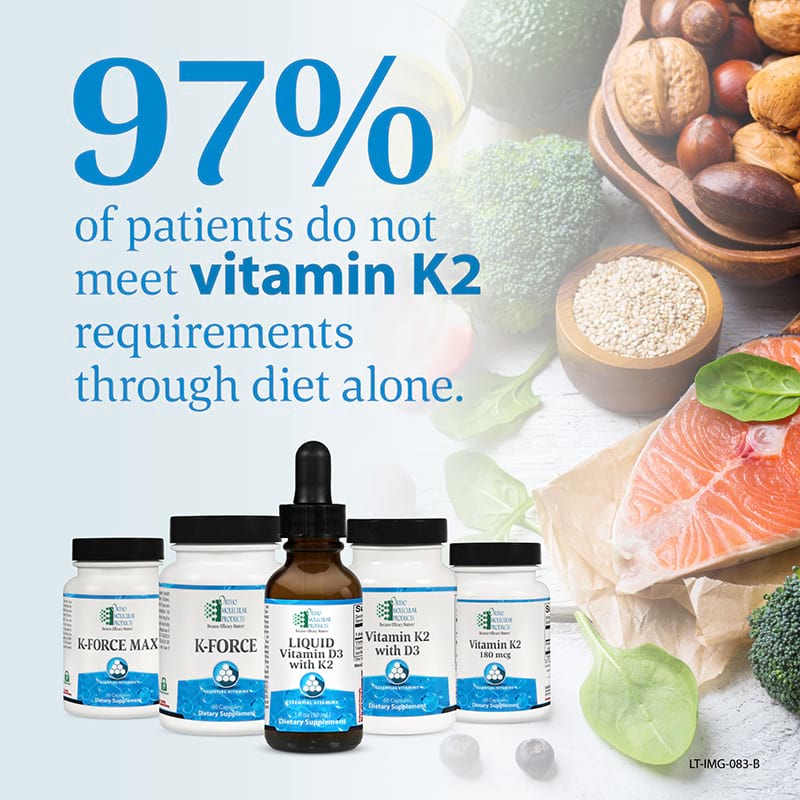 Vitamin K2 is a powerful vitamin that is unfortunately almost absent from the American diet. Vitamin K2 as MK-7 is important for all ages, helping to support bone health and arterial elasticity. Vitamin K2 can support adolescent bone development and preserve cardiovascular wellness and proper bone strength in adults. We love the different vitamin K2 formulas from Ortho Molecular Products! Ask us which option is right for you. #functionalmedicine #cardiovascular #bonehealth #MK7 #vitaminK2 #orthomolecularproducts #supplement #VitaminD3 #holistic #healthyVitaminD3andK2 #cardiometabolic
